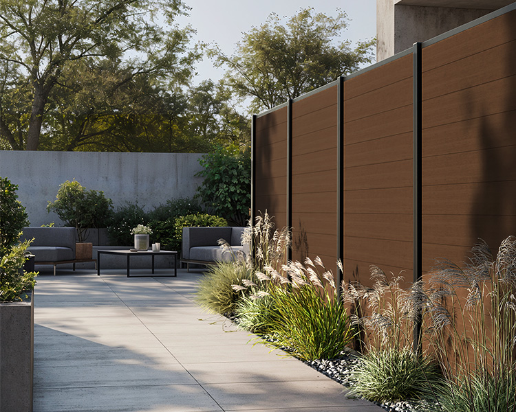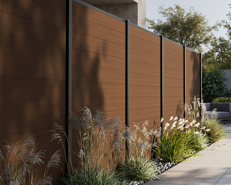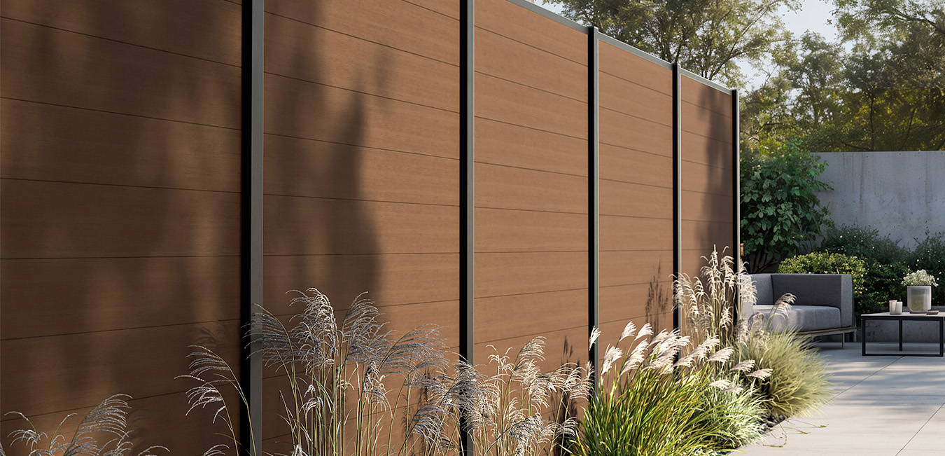 Inspired by exotic woods, the EXOTICS fence reflects the natural warmth and nobility of tropical species. Whether in brown or red tones, this composite fence enhances contemporary outdoor spaces and blends perfectly with modern architecture or lush, landscaped environments.